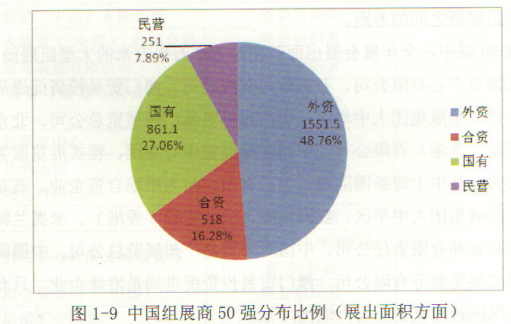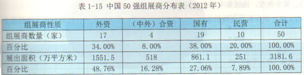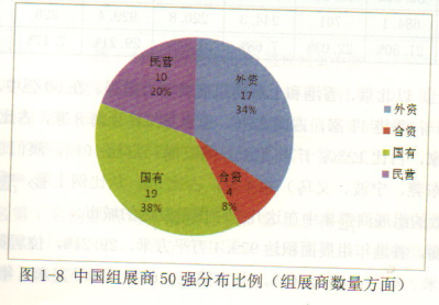 对上表数据进行挖掘整理得到表1-15,则能够更加清晰地看到中国本土组展商(包括国有和民营)与外资组展商之间的差距。