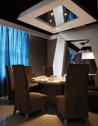 在对面的利用中,使用条形或整幅的镜面玻璃形成虚中见实的视错觉效果,是展示设计较为常用的一种视错觉处理办法。在陈列布置上巧妙的利用镜子将有助于制造假象,在视觉上扩大空间范围。此外镜子还能产生一种虚幻的对称效果。
