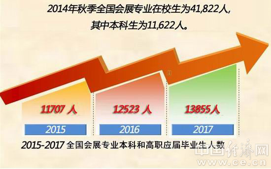 根据最新统计,2014年我国会展教育保持较快发展势头,全国招收会展新生14293人,较上年增加10.2%。新生入学后,全国会展专业在校生规模达41822人,创历史最高水平。2015-2017会展专业