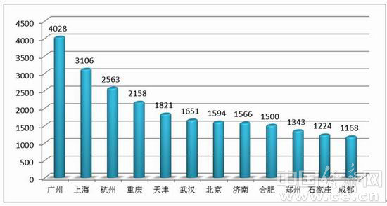 报告指出:我国会展教育集中度较高,广州荣登首席宝座。2014年, 全国229所会展院校分布在66个城市。其中会展专业在校生人数超过1000人的有12个城市,在校生首位城市由广州替代了上海,上海退居第二。3-12位依次是杭州、重庆、天津、武汉、北京、济南、合肥、郑州、石家庄、成都(图4)。12市在校生合计为23722人,占全国56.7%。其中教育规模超过2000人的广州、上海、杭州、重庆4市,就占了全国的1/3(32.7%)。