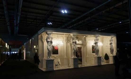 造型景观是展台的延伸,不能喧宾夺主,主要还是门头设计为主。如:欧式风格的造型景观,特别是欧式田园风格,可营造成一种贴近自然的形式。