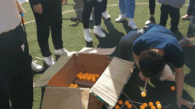 吸管运球(用吸管吸住5个乒乓球投进箱子里)