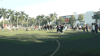 规则:全部人围着圈跑起来,在裁判的一声令下报数,根据数字抱住人,人数为裁判所报数字,人数不够的