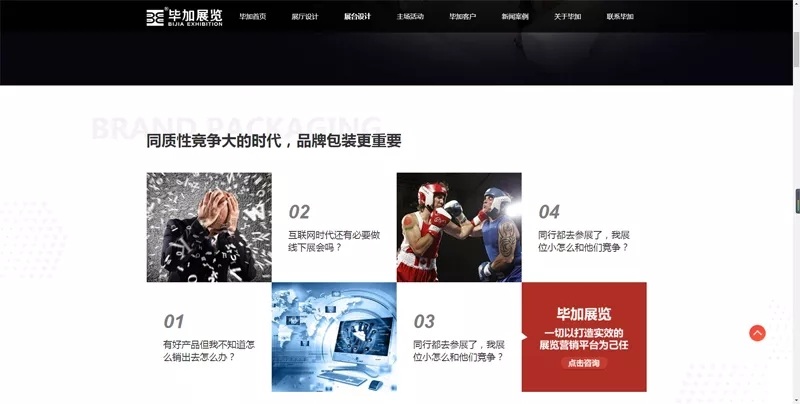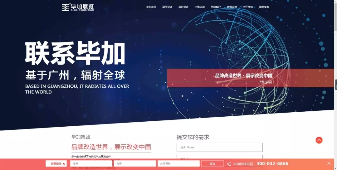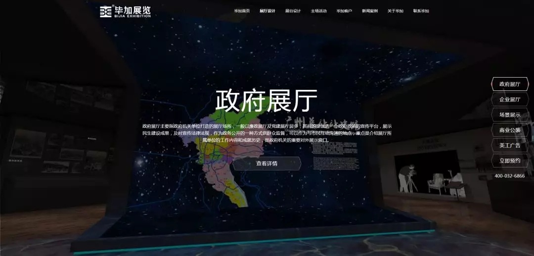 首页中有合适的版块帮助客户对自身需求,快速进入所需展厅、展台、主场类型的详情页面,为解决客户需求提供便利!每一个页面的制作都是经过精心设计的,以表达为主旨的设计理念,用智能化展示突破感官,以客户的角度对网站进行一个板块式设计,在给客户带来震撼效果的同时,解决客户的需求,达到最终营销效果。