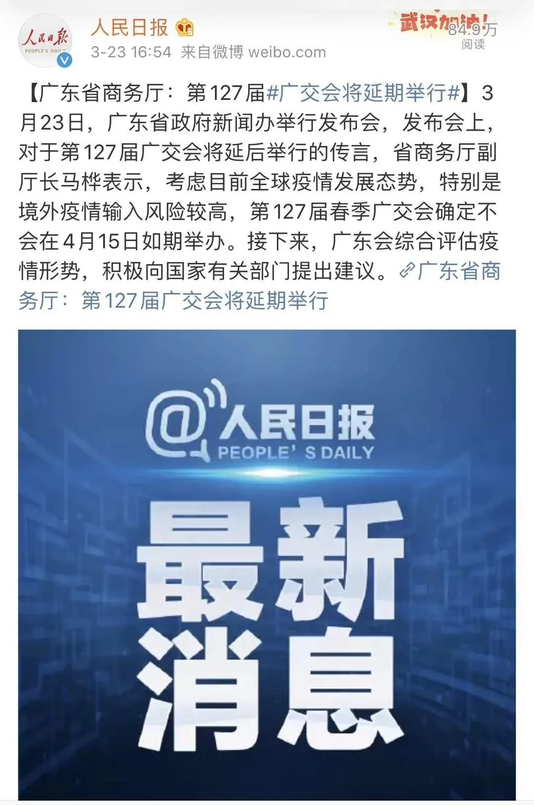 最新讯息!广交会延期举行,将取消原定4月15日举办