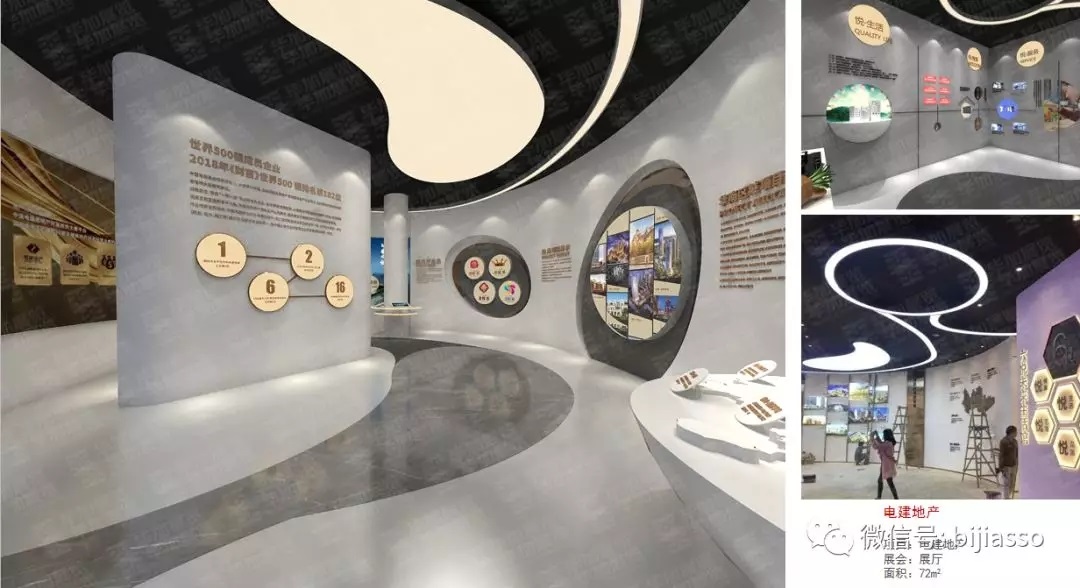 更合理的空间结构设计:在展厅的空间限制上,就不适合使用一些常见的展厅结构划分与造型设计,我们需要对小展厅现有的一个空间形状进行一个布局,不管是墙面、顶部还是地面的使用都要考虑进入,是否要使用到地面投影与天幕投影的方式来提高展示内容的大小,来解决展示内容多空间体量小的问题。