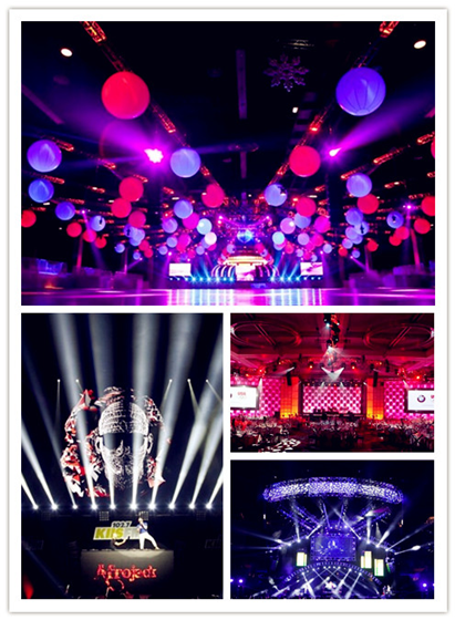 用多种灯光色彩相互配合,营造热烈的气氛,给人以兴奋感,带动人们的热情,如下图: