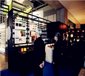 第三、发光体的合理运用。有时企业得到的展位位置不好,所以在展台设计布局上要刻意增加发光体的数量和增大发光体的体积,让整个展位都亮起来,以吸引观众注意力。具体做法可以设计安装一些带有企业LOGO的灯箱、发光墙、灯柱等,比如直接将整个接待台设计成发光台。甚至直接将整个展台设计成发光体,如安装成组的格栅灯,排成行或方格网;或使用槽灯照明方式照亮;还可使用直管型荧光灯做成大面积的发光体;更可运用先进的照明技术,使整个场地的天棚、墙面和地面都亮起来。