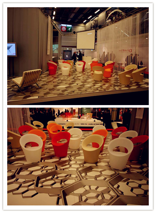 展会中色彩的设计也是展览设计中的关键部分之一,其要在企业识别系统指导下准确运用,这不但会增强视觉冲击力,抓住观者眼球,更能充分体现企业形象品牌精神,使观者在特定的、有限的展示空间中最大程度地接受企业信息。成功的展览主色调或者企业的标准色,可以成为展示空间中的标志象征,并起到良好的指示性和导向作用,这其实是一条“产品—标志—包装—广告”的色彩战略,色彩可以使观者从远处就能清楚地识别参展企业。