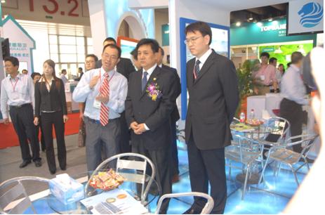 左朗坤集团总裁 中 吴晓青部长 右 环保部司长 2011年11月9日-11日,由毕加展览设计的朗坤环保集团在2012中国国际绿色创新技术产品展主题展区高调亮相,环保部副部长吴晓青亲临朗坤展台参观视察。 |